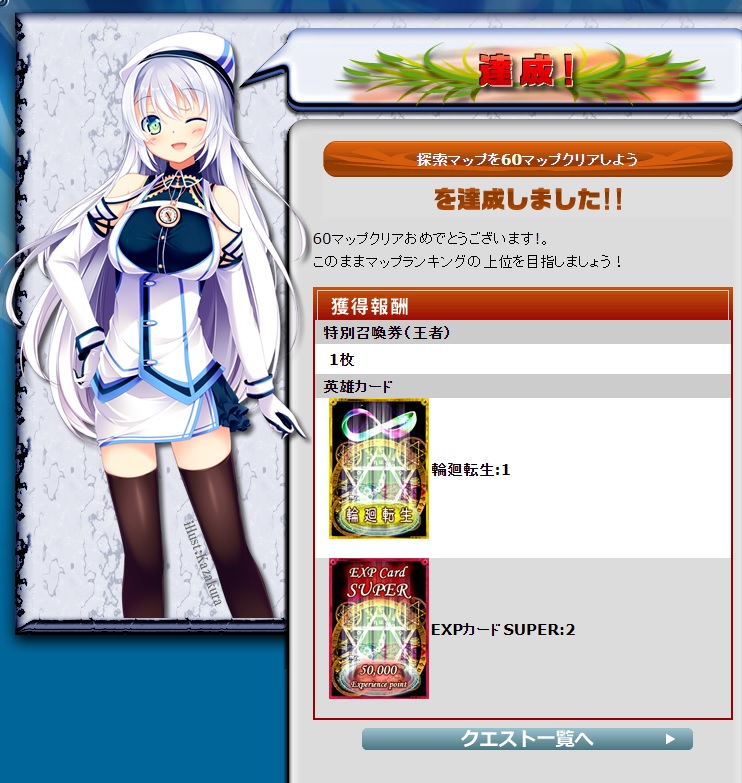 探索マップもついに60まで終了。輪廻カードもっと弾んでくれても良くない?
